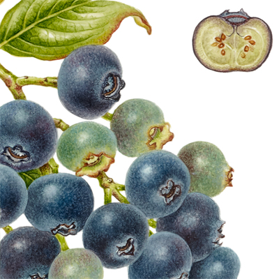 Blueberries are indigenous to Europe, North America and parts of Europe. In Spring the pinkish white waxy flowers are followed by blue black fruits with a whitish bloom, which vary in size depending on the variety. As well as the flowers and fruit, the plant has great value as an eye-catching shrub in Autumn, with the firery leaves giving a welcome show of colour late into the season. The fruits are widely used in desserts and juices.